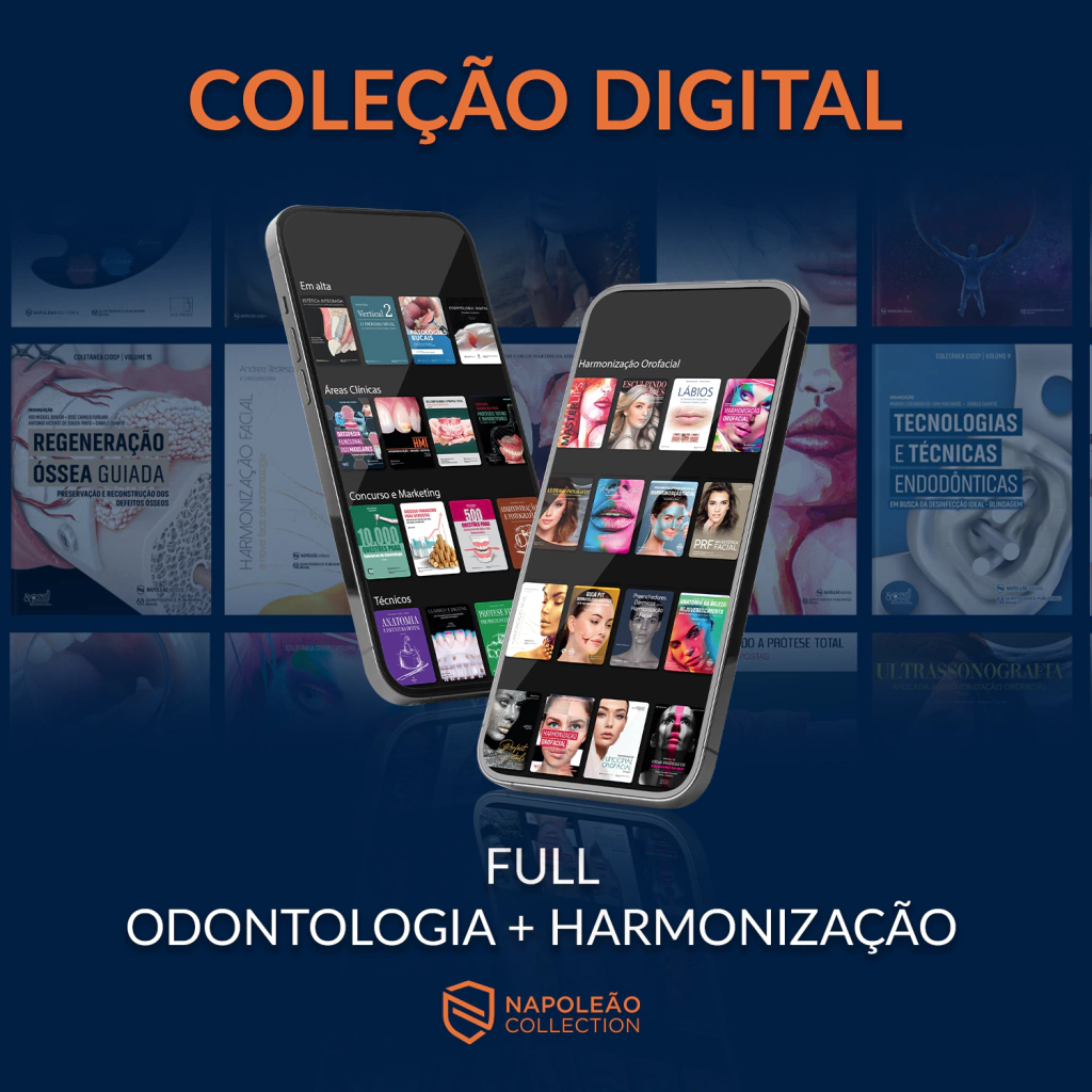 Coleção Digital - FULL - Odontologia + Harmonização Facial e Corporal - Benefícios ao adquirir a Napoleão Collection: ● Acesso completo aos livros por 1 ano da Napoleão Collection; ● Descontos exclusivos em livros da Editora Napoleão; ● Acesso à comunidade fechada com informações em primeira mão.